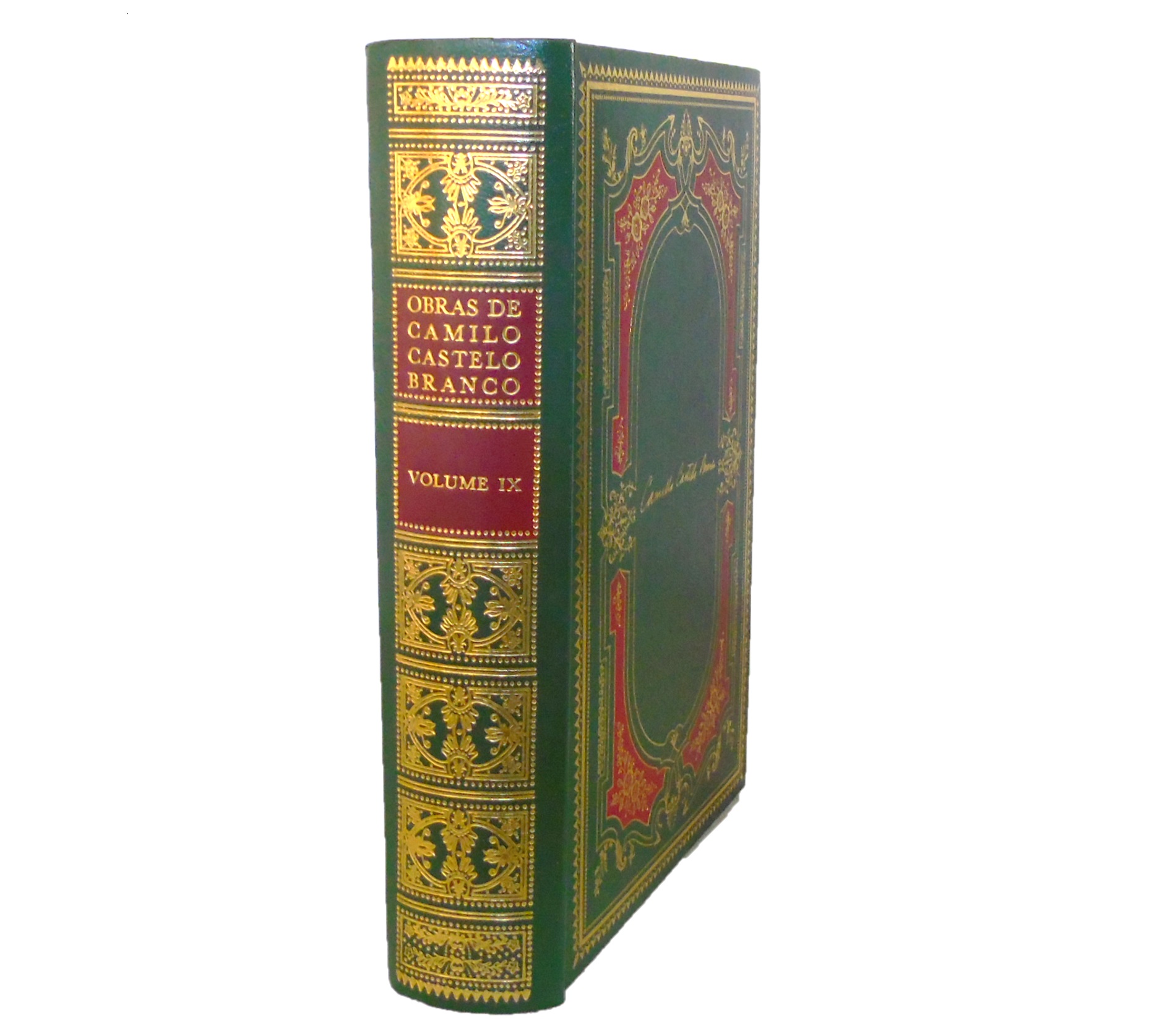 Encadernação editorial em inteira imitação de pele, com exuberantes dourados gravados sobre as lombadas e pastas.