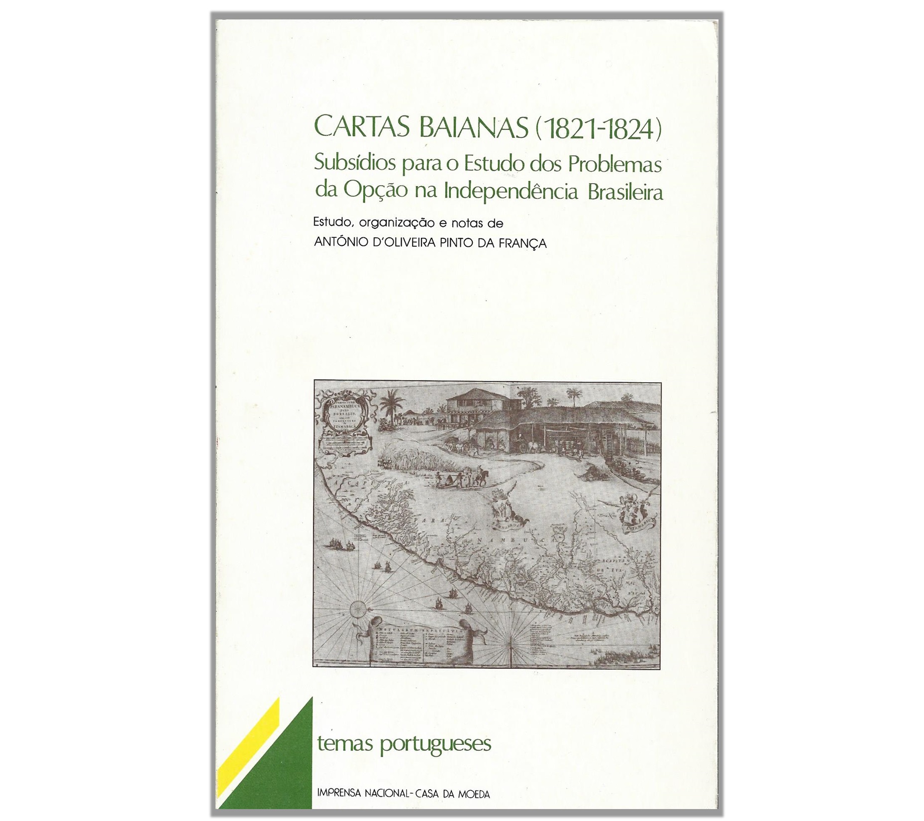 CARTAS BAIANAS, 1821-1824: SUBSÍDIOS PARA O ESTUDO DOS PROBLEMAS DA OPÇÃO NA INDEPENDÊNCIA BRASILEIRA. ESTUDO, ORGANIZAÇÃO E NOTAS DE ANTÓNIO D’OLIVEIRA PINTO DA FRANÇA (1980) LISBOA: IMPRENSA NACIONAL-CASA DA MOEDA. DE 24X15 CM. COM 320, [2] PÁGS. B.