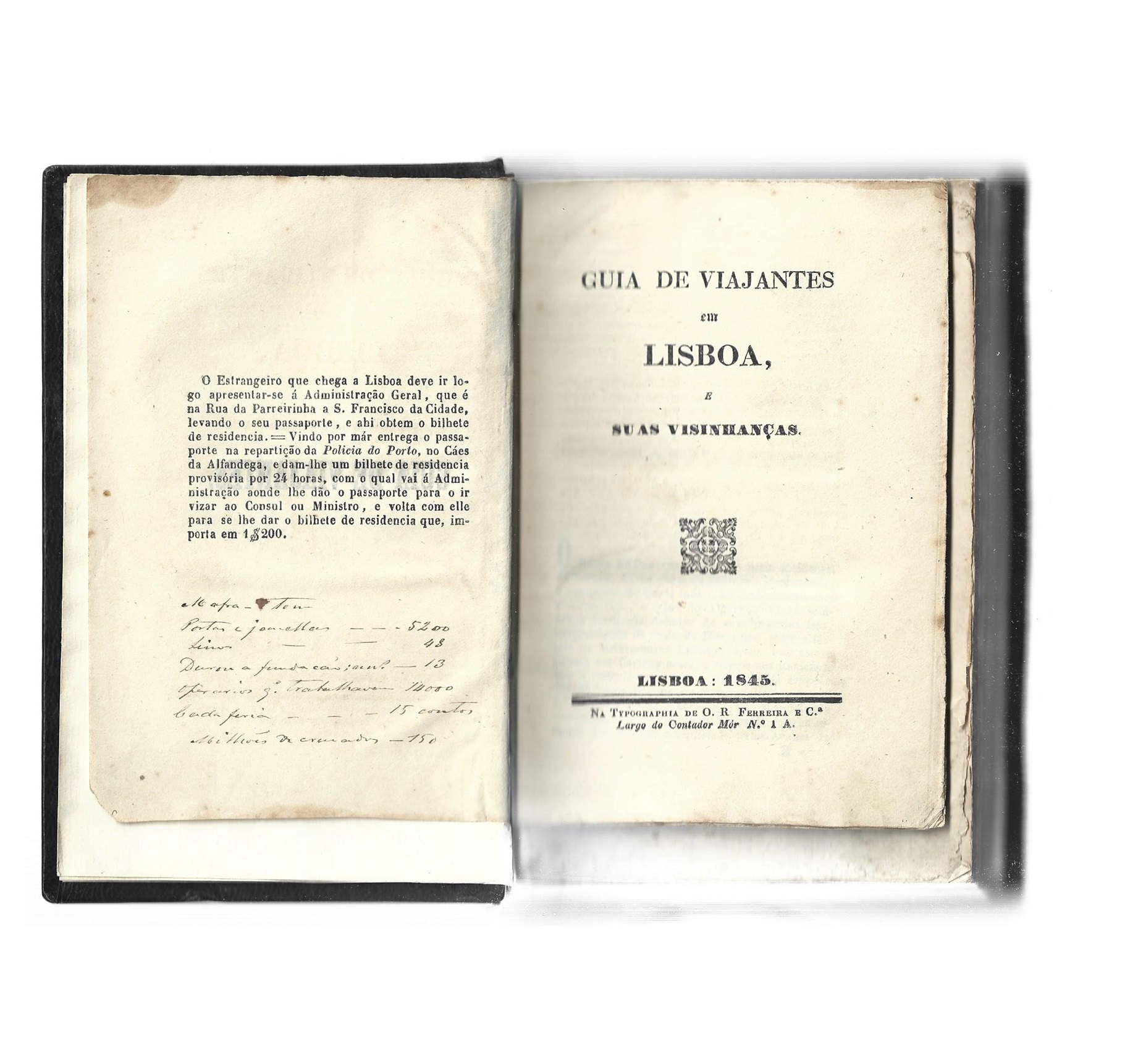 GUIA DE VIAJANTES EM LISBOA E SUAS VISINHANÇAS. LISBOA: NA TYPOGRAPHIA DE O. R. FERREIRA E C.ª, 1845. DE 15X10 CM. COM 90, [3] PÁGS.