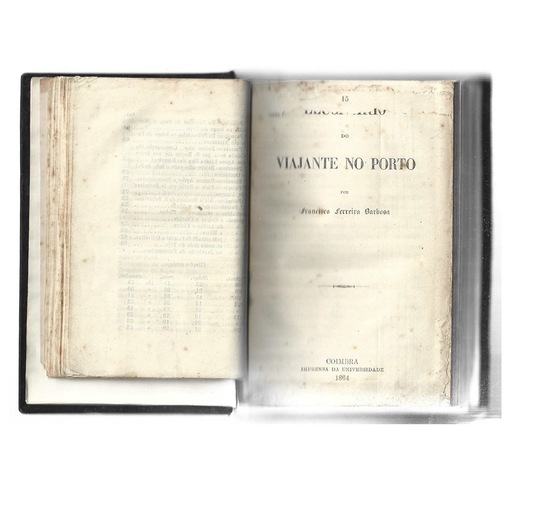 Muito curioso e invulgar Guia da cidade do Porto, com notícias mais ou menos desenvolvidas sobre os principais monumentos e ruas da cidade «invicta» oitocentistas. Pelo interesse evidente destacamos as «entradas» dedicadas: à Capela de Carlos Alberto, aos hospitais, aos cemitérios, a variadíssimos conventos e mosteiros, a colégios, hospícios, asilos, bem como à roda dos expostos. A Camara Municipal, a alfandega, a cadeia, os quarteis, os teatros, os principais palácios, as academias, as escolas, as fábricas, os bancos, as companhias de seguros são também referidas com demora. [faltam as primeiras 14 pp. do livrinho; as fls. iniciais apresentam perdas de papel à cabeça, sem prejuízo do texto, com exceção da fl. do frontispício que perde parte da palavra «elucidário»]