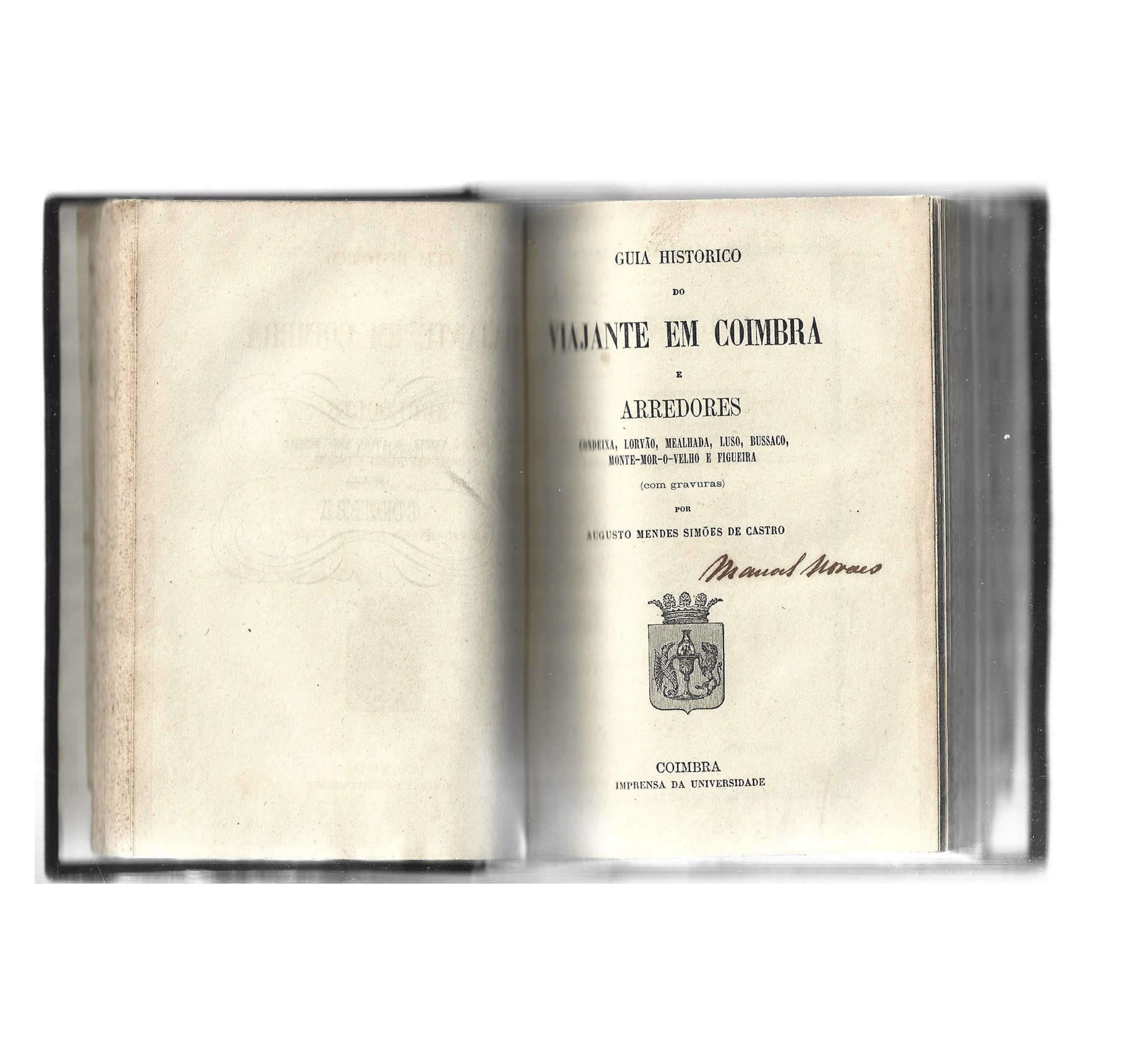CASTRO, AUGUSTO MENDES SIMÕES DE [1867] GUIA HISTORICO DO VIAJANTE EM COIMBRA E ARREDORES. CONDEIXA, LORVÃO, MEALHADA, LUSO, BUSSACO, MONTE-MOR-O-VELHO E FIGUEIRA. COIMBRA: IMPRENSA DA UNIVERSIDADE. DE 17X11 CM. COM [6], 327 PÁGS. B.