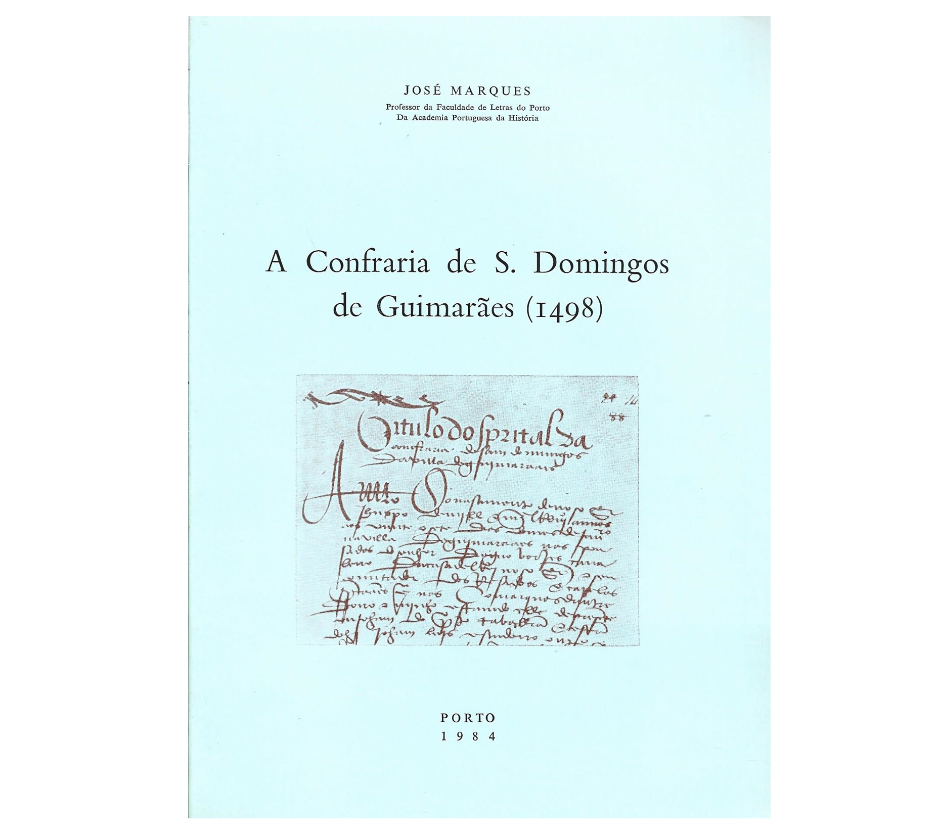 MARQUES, JOSÉ (1984) A CONFRARIA DE S. DOMINGOS DE GUIMARÃES (1498). PORTO: [S.N.] (BRAGA: -- GRÁF. LIVR. CRUZ). DE 24X17 CM. COM 45 PÁGS. B.