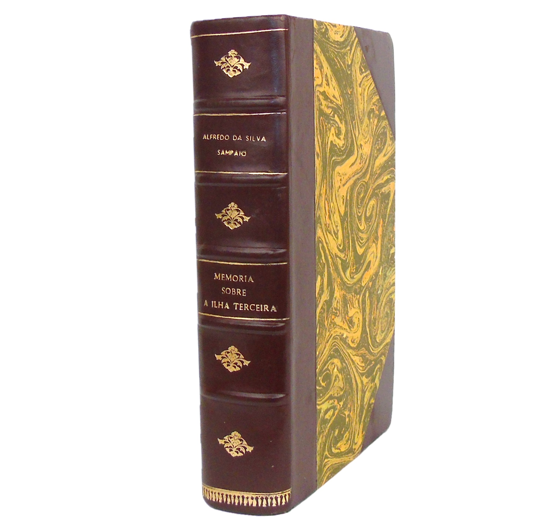 Um dos mais estimados trabalhos sobre a Ilha Terceira que foi durante a maior parte do século XX obra de referência e das mais consultadas por todos quantos quiseram estudar a Ilha. Trabalho ainda hoje muito proveitoso, demonstrando-o a reedição recentemente promovida pelo Instituto Histórico de Ilha Terceira. “(…) Dividimo-lo em cinco partes, perfeitamente distinctas: geologia, flora, fauna, topographia e história política. Como vê o leitor, fomos um pouco além, addicionando a história política, onde a ilha Terceira ocupa um lugar distincto, compilando alguns documentos que se encontravam dispersos, por nos parecer que assim obteríamos um trabalho mais completo. Na primeira parte encontrará o leitor as opiniões mais geralmente seguidas sobre a origem do Archipelago Açoreano. A segunda parte comprehende o trabalho completo do nosso saudoso pae, cuja impressão começara poucos mezes antes da sua morte. Quanto às restantes, serviu-nos de guia, na parte científica, esse resumido número de livros escritos sobre a fauna açoriana, que o leitor encontrará na parte bibliográfica; E, para a história, os trabalhos dos nossos ilustres escriptores terceirenses”. Encadernação meia de pele com cantos, decorada com nervos, ferros de fantasia e títulos ao ouro sobre a lombada; corte da cabeça carminada, única margem com o efeito aparada.; capara preservadas [capas e miolo amarelecidos e com acidez, esta mais notada numa ou outra página, especialmente na iniciais e finais; capas com manchas e pequenas perdas de papel nas extremidades]