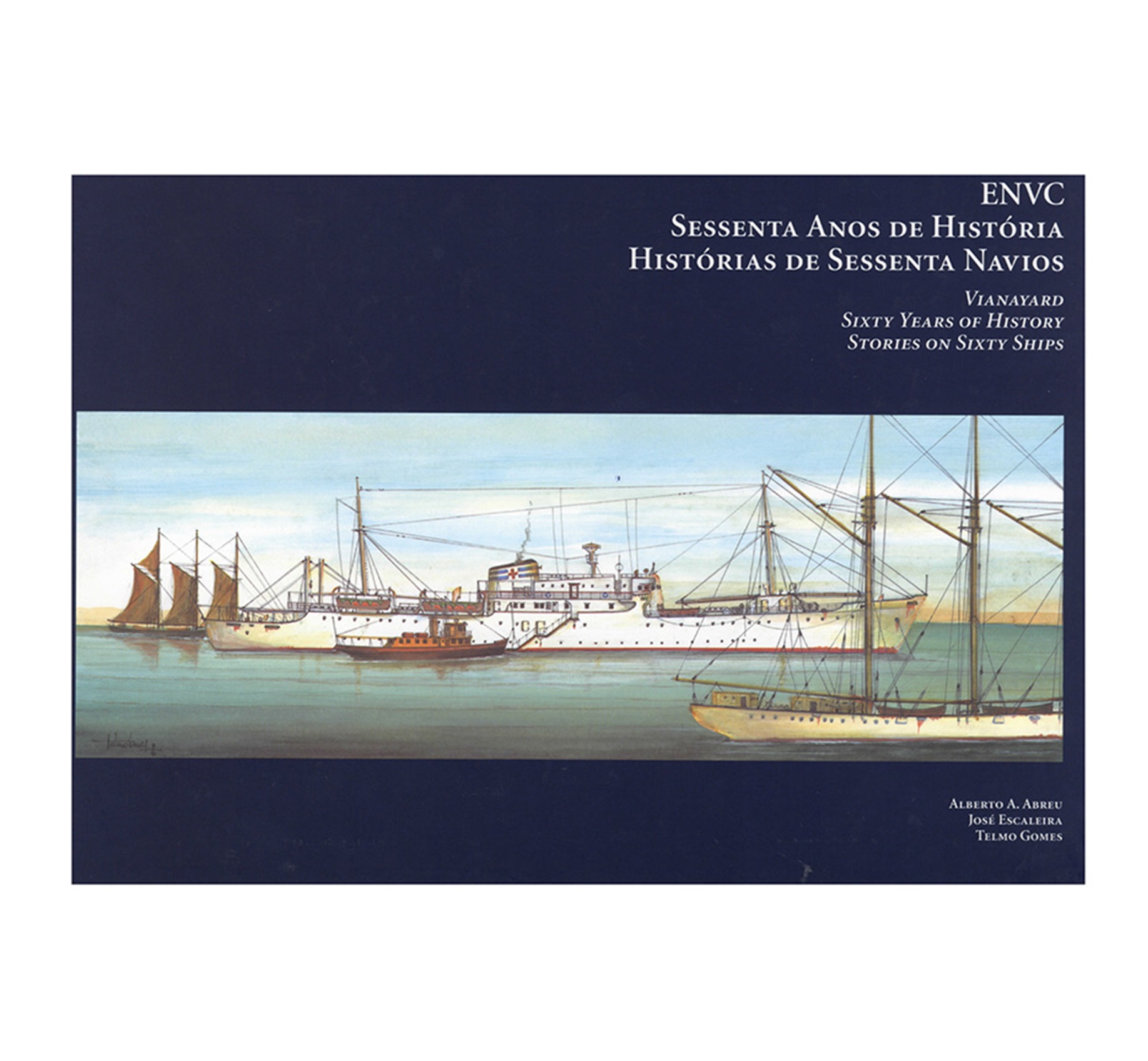 Interessante trabalho sobre os setenta anos de história e histórias dos Estaleiros Navais de Viana do Castelo, e sobretudo sobre setenta dos mais notáveis navios construídos nestes emblemáticos estaleiros. Apresentado numa edição luxuosa, a que fica ligado o nome de Telmo Gomes, figura incontornável da ilustração de cariz marítimo em Portugal do século XX, o livro, conta com textos de dois historiadores, de créditos firmados, Alberto Abreu e José Escaleira e com belíssimos desenhos de setenta navios da autoria do referido ilustrador. Do textos merecem especial destaque: «Da jangada ao navio-patrulha oceânico – uma história vianense»; «Uma póvoa marítima»; «A pesca do bacalhau e o relançamento da vida marítima vianense»; «Histórias de Sessenta Navios». Texto em português e inglês.