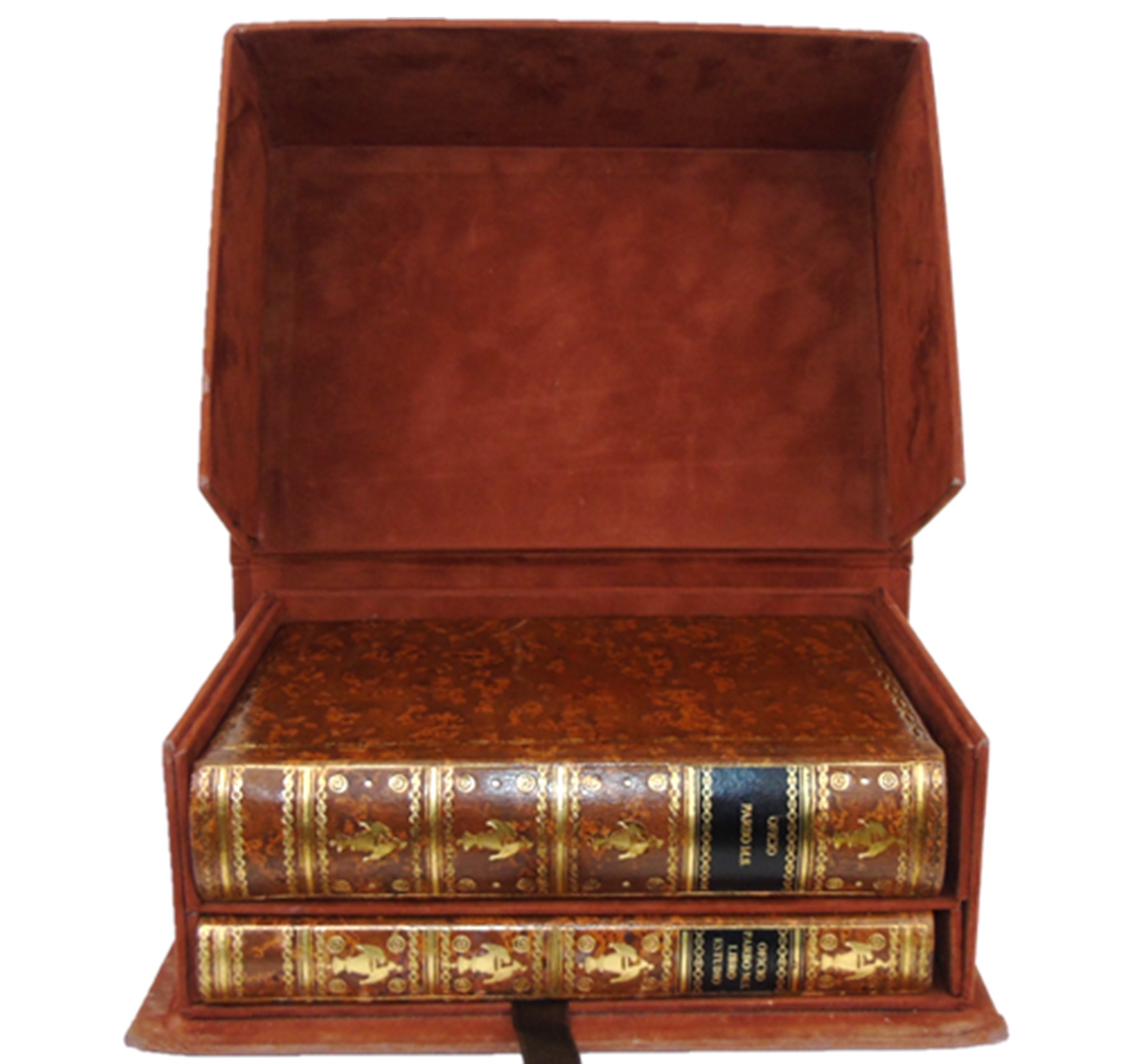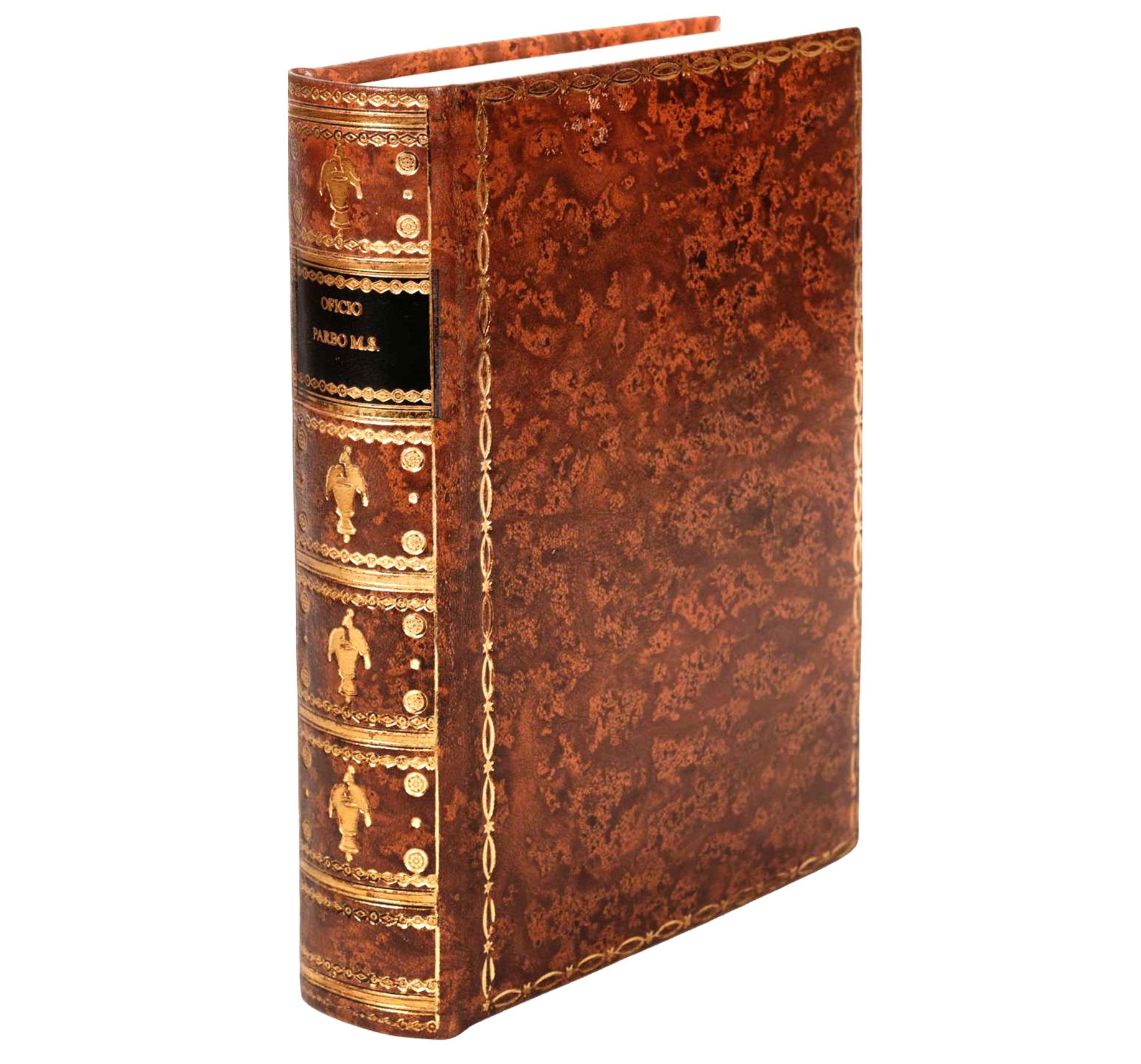 Fac-símile impresso com inexcedível rigor tipográfico sobre encorpado papel pergaminho com tratamento especial e envelhecido e com os cadernos cosidos de forma artesanal; apresenta-se revestido de encadernação inteira de pele com ferros próprios a ouro nas pastas e lombada; o volume que encerra o «estudo», apresenta-se encadernado com a lombada em pele reproduzindo os ferros da encadernação do fac-símile e as pastas e tela. Volumes acondicionados em caixa/estojo, armada em cartão e revestida em tela de veludo gravada com ferros a seco. [peça bem conservada, denotando somente a caixa/estojo algum desgaste]
