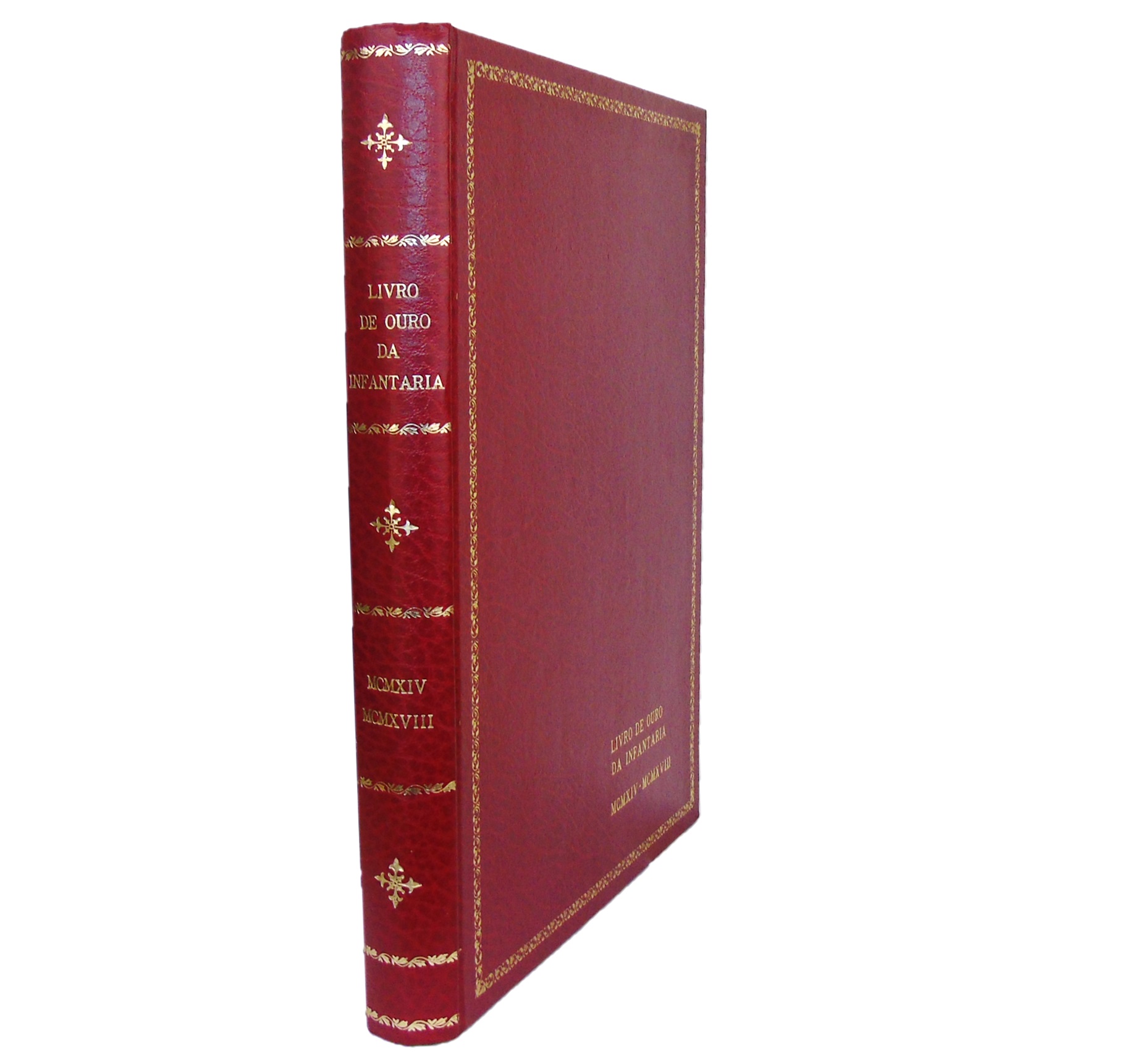 LIVRO DE OURO DA INFANTARIA: MCMXIV - MCMXVIII. LISBOA: NA TIPOGRAFIA FERNANDES & Cª. [COMISSÃO TÉCNICA DA ARMA DE INFANTARIA], 1922. IN FÓLIO DE 31X23 CM. COM 285 PÁGS. ILUST. E.