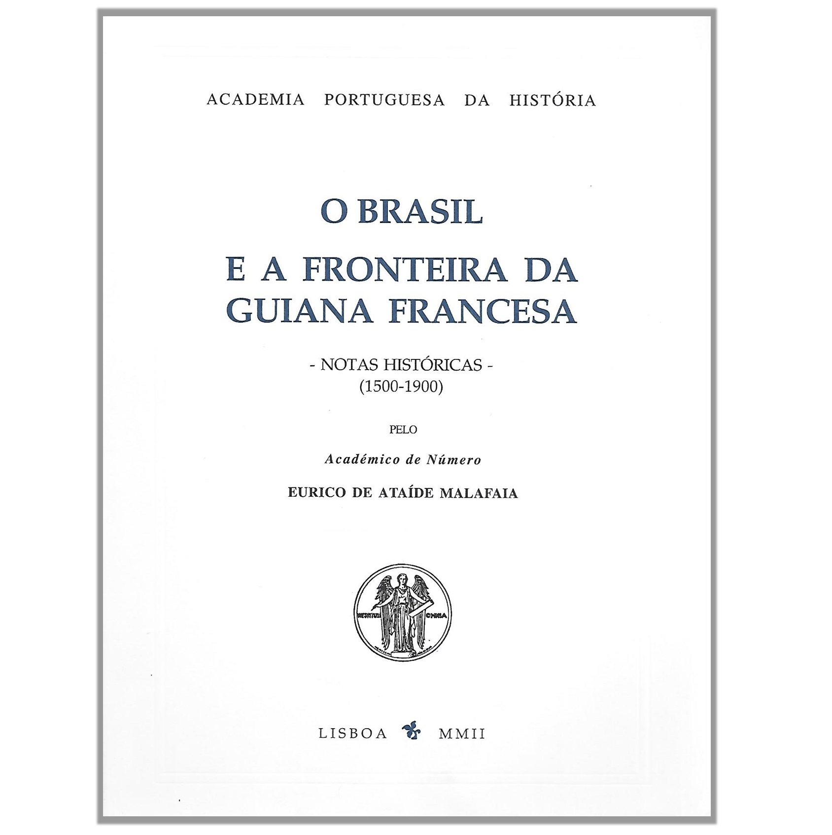 MALAFAIA, EURICO DE ATAÍDE (2002) O BRASIL E A FRONTEIRA DA GUIANA FRANCESA: NOTAS HISTÓRICAS, 1500-1900. LISBOA: ACADEMIA PORTUGUESA DA HISTÓRIA. DE 25X16 CM. COM 197, [2] PÁGS., [1] F. DESDOBR. B.